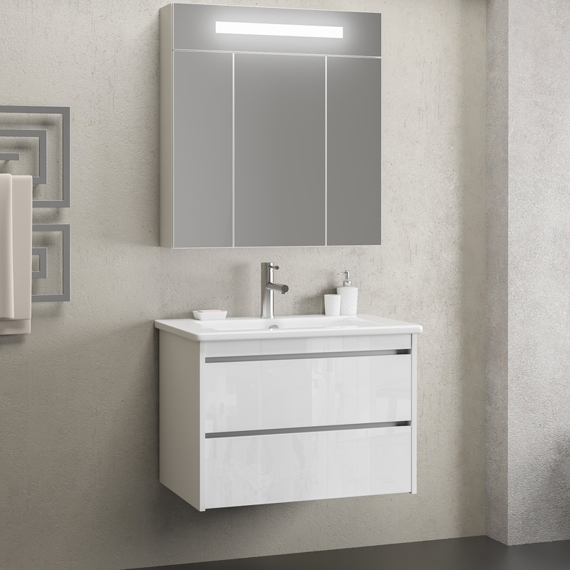Комплект мебели для ванной Opadiris Фреш 80 подвесной Белый глянцевый