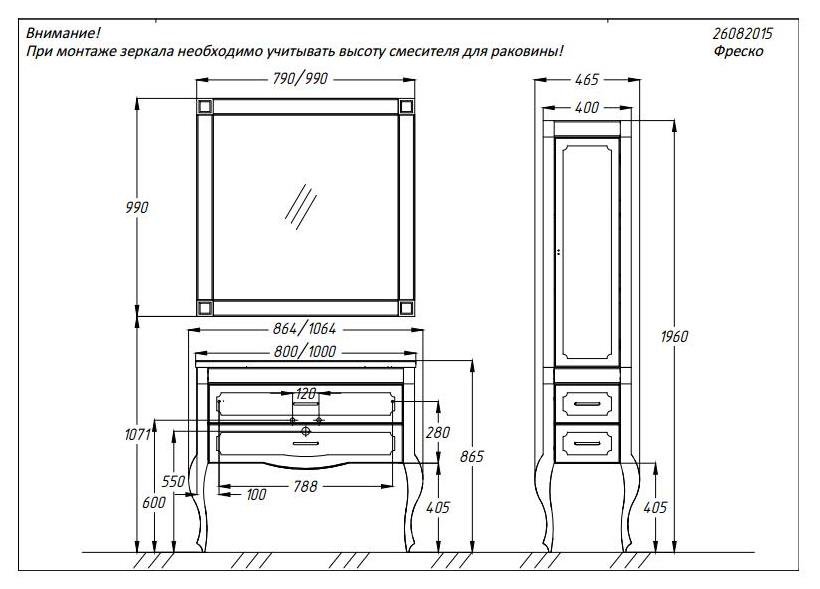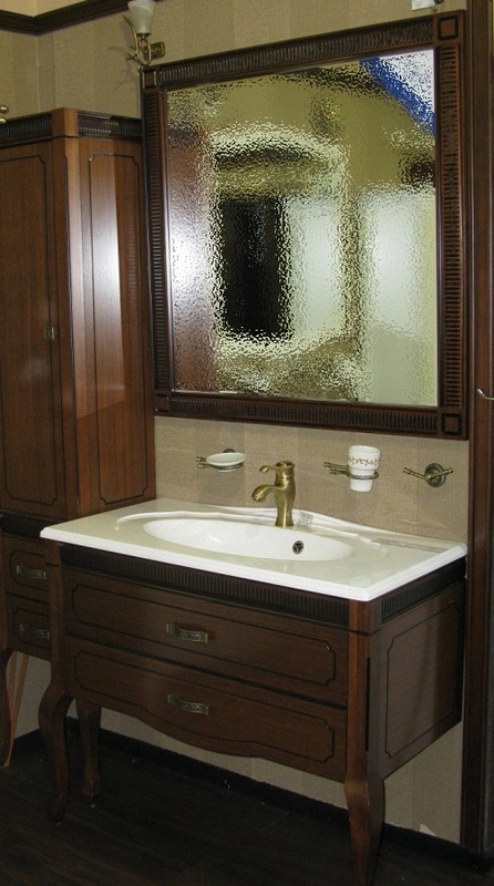 Станет шикарным элементом в интерьере ванной комнаты. Превосходно подходит для классического стиля. Роскошный фасад выполнен с темной патиной в местах глубокой фрезеровки, а также дополнен высокими гнутыми ножками.
