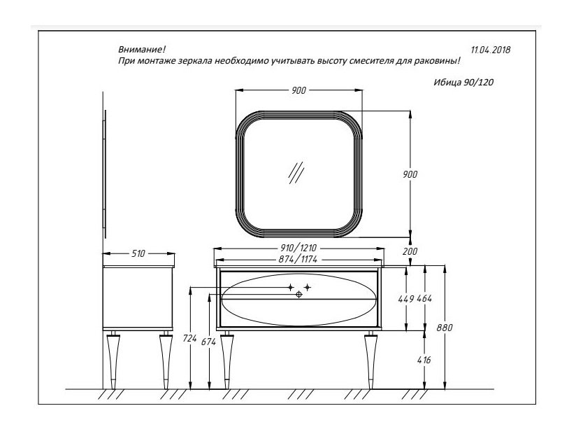 В комплекте поставки: тумба, раковина (фаянс), зеркало.