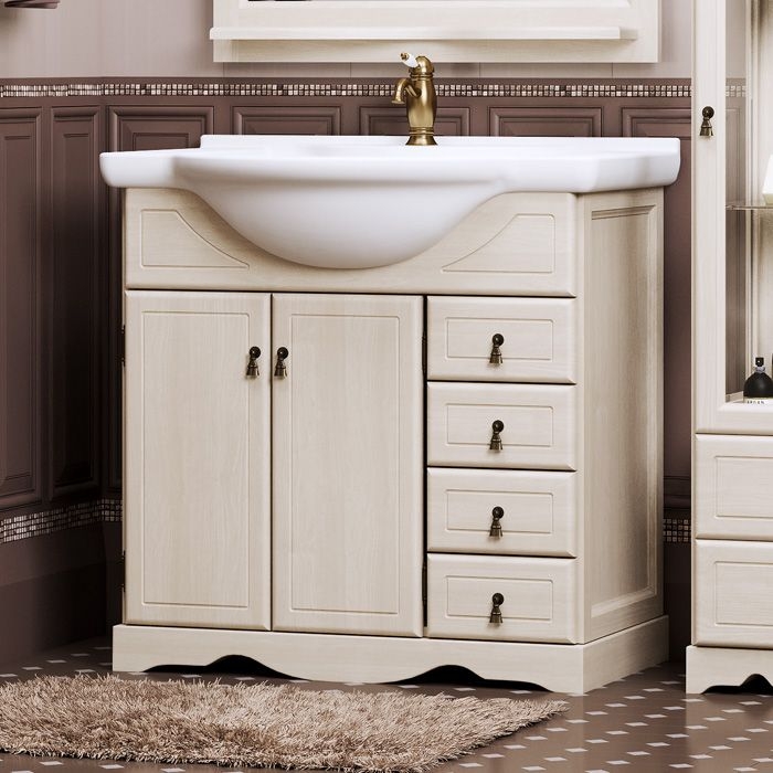 Комплект мебели для ванной Opadiris Клио 70 Беленый бук со светильником Рустика Бронза