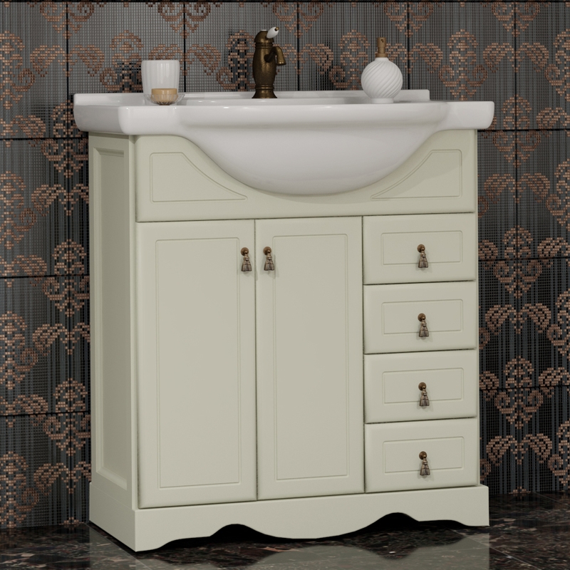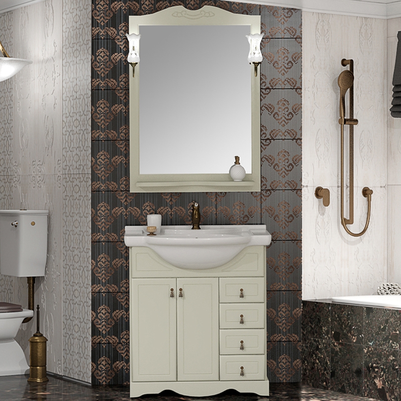 Комплект мебели для ванной Opadiris Клио 70 Слоновая кость со светильником Рустика Бронза