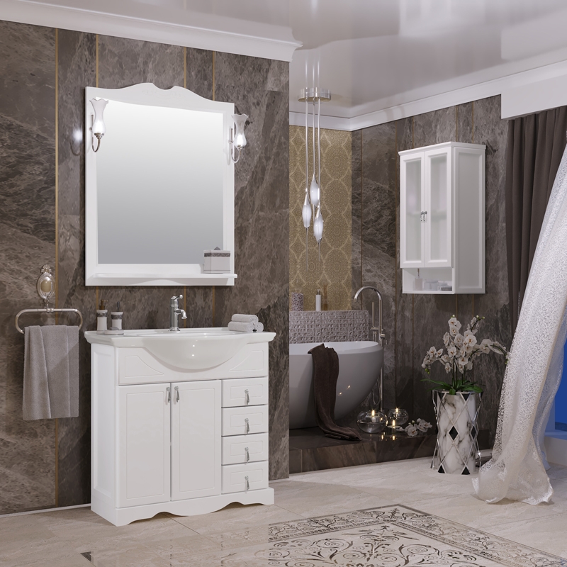 Комплект мебели для ванной Opadiris Клио 80. Цвет: белый матовый.