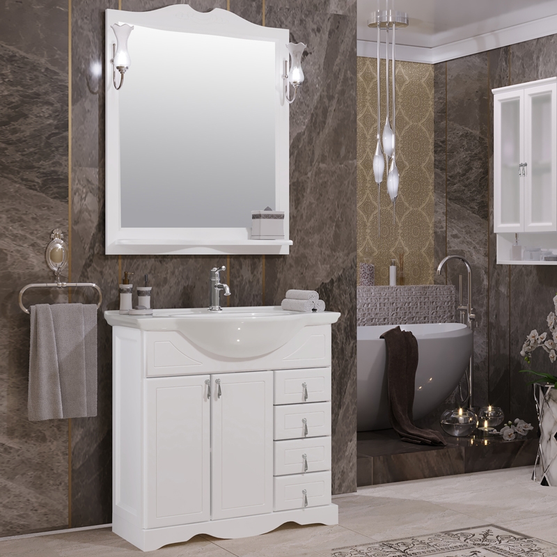 Комплект мебели для ванной Opadiris Клио 80 Белый матовый со светильником Рустика Хром