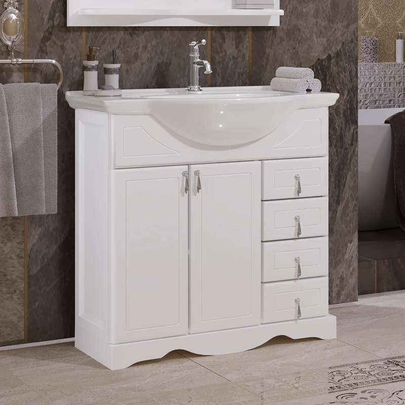 В комплекте поставки: тумба, раковина (фаянс), зеркало, светильник (2 шт.).