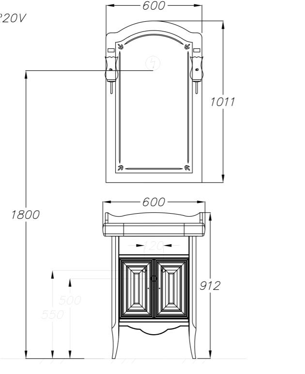 Выполнен в классическом стиле с плавными изогнутыми формами и изящными слегка гнутыми ножками. Фасадные элементы украшены резными узорами, зеркало с лазерной гравировкой.
