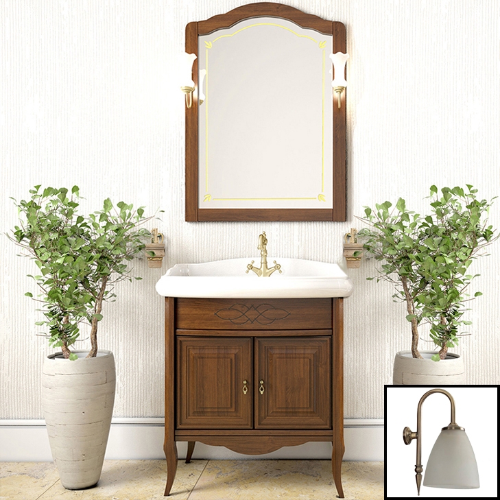 Комплект мебели для ванной Opadiris Лоренцо 80 Светлый орех со светильником Изабель Бронза