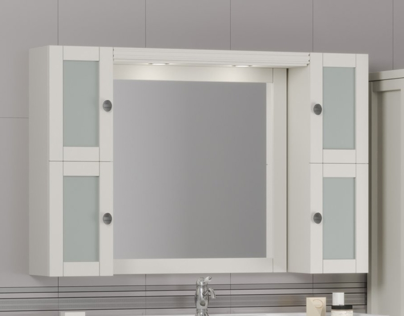 В комплекте поставки: тумба, раковина (фаянс), зеркало, козырек с подсветкой, шкаф (2 шт.).