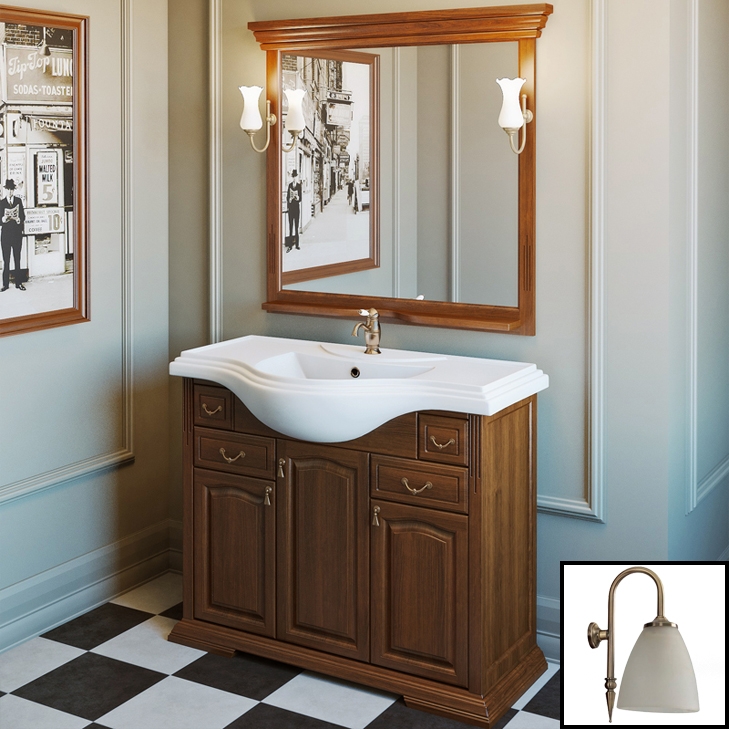 Комплект мебели для ванной Opadiris Риспекто 105 Орех антикварный со светильником Изабель Бронза
