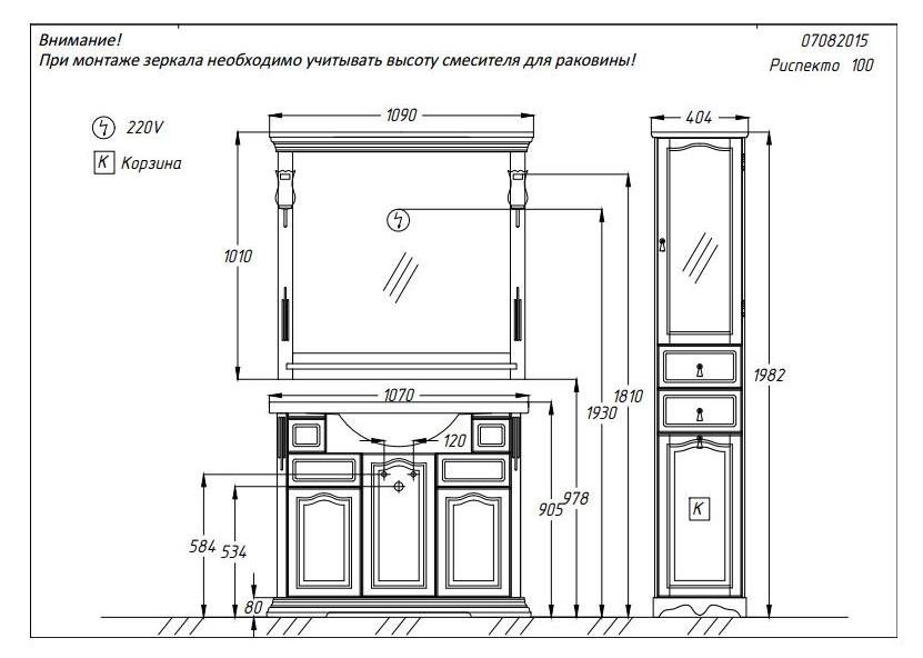 Комплект мебели для ванной Opadiris Риспекто 105 Слоновая кость со светильником Рустика Бронза