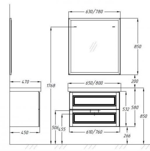 В комплекте поставки: тумба, раковина (искусственный камень), зеркало, светильник (1 шт.).
