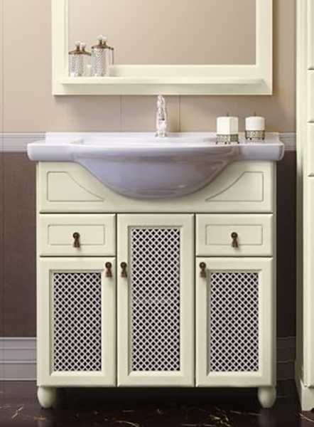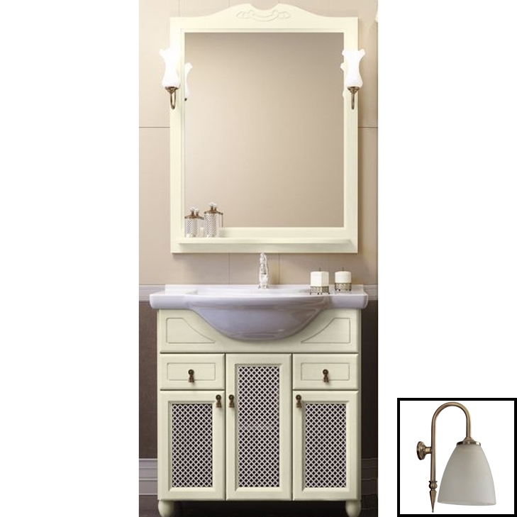 Комплект мебели для ванной Opadiris Тибет 70 с решеткой Слоновая кость со светильником Изабель Бронза