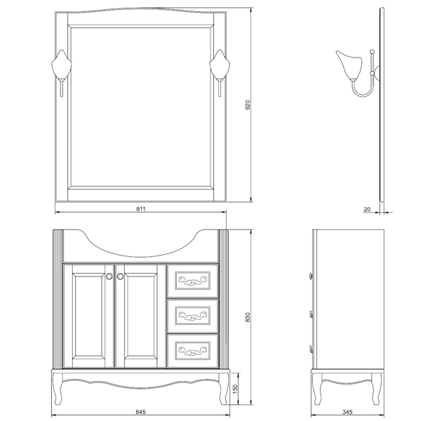 Комплект мебели для ванной ValenHouse Эллина 85. Дизайн модели EK85_БЗ превосходно дополнит интерьеры ванных комнат, оформленных в различных стилях: классическом, барокко, кантри.Характеристики:Тумба Эллина 85: