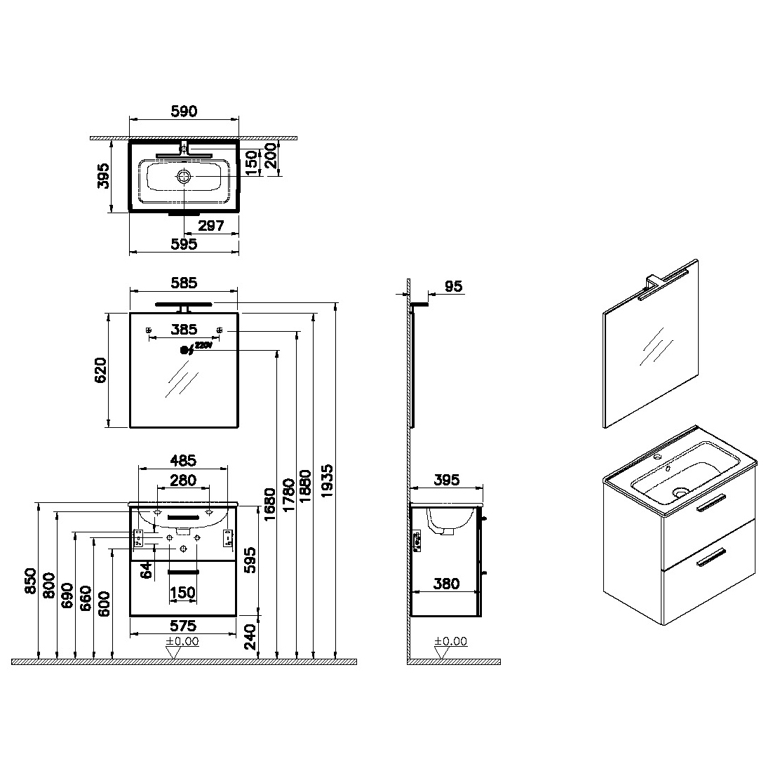 Комплект мебели для ванной Vitra Mia 60 75103 подвесной Кордоба