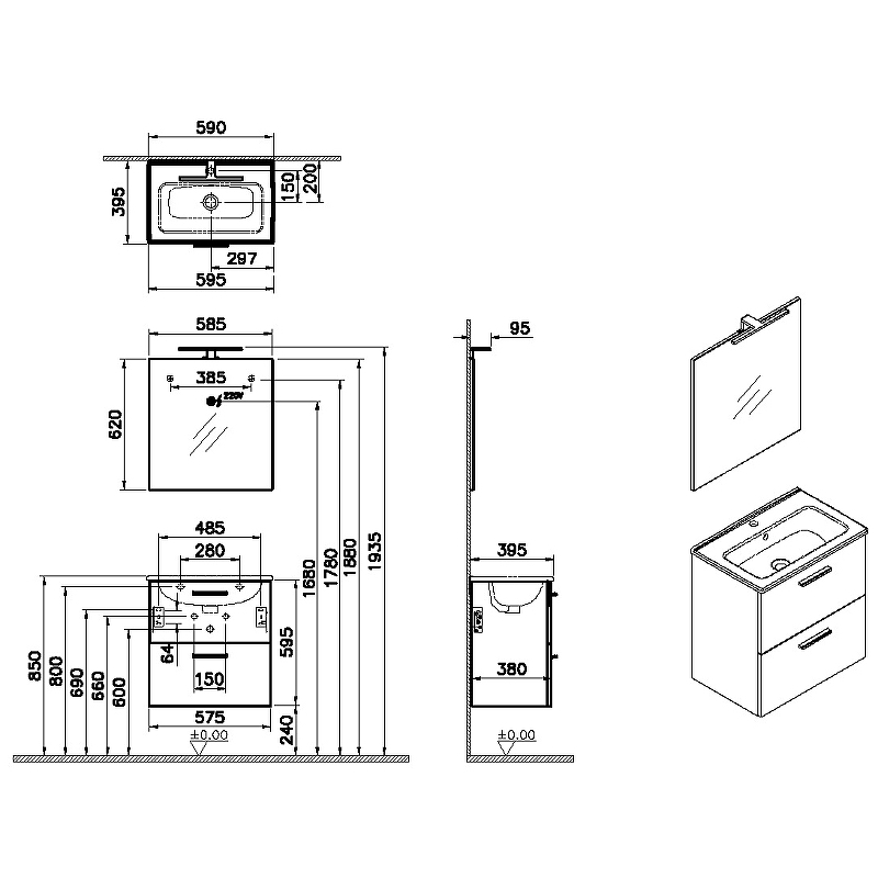 Комплект мебели для ванной Vitra Mia 60 75103.