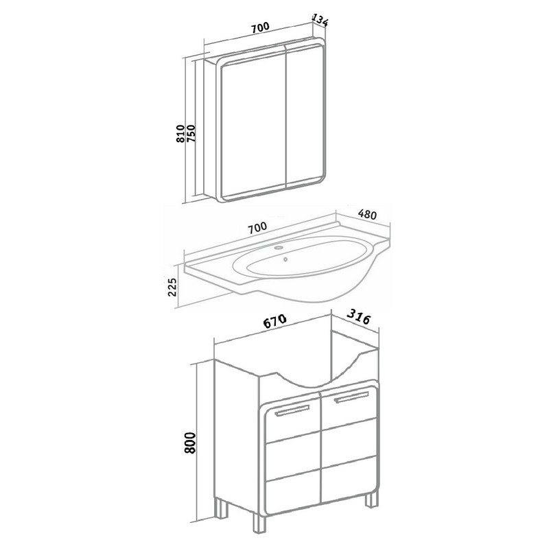 Комплект мебели для ванной Runo Эрика 70 в белом цвете - это удобный, практичный и красивый гарнитур, который поможет Вам создать стильный и комфортный интерьер в ванной комнате. Для изготовления мебели используются только высококачественные и экологически чистые материалы, устойчивые к влаге и коррозии,что значительно увеличивает срок эксплуатации.Характеристики: