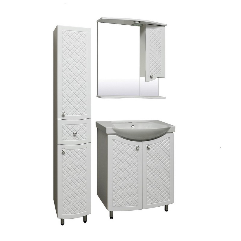 Комплект мебели для ванной Runo Милано 65 в белом цвете - это удобный, практичный и красивый гарнитур, который поможет Вам создать стильный и комфортный интерьер в ванной комнате. Для изготовления мебели используются только высококачественные и экологически чистые материалы, устойчивые к влаге и коррозии,что значительно увеличивает срок эксплуатации.Характеристики: