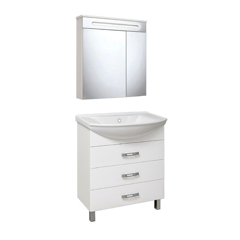Комплект мебели для ванной Runo Рига 65 напольный с зеркалом Парма 60 в белом цвете - это удобный, практичный и красивый гарнитур, который поможет Вам создать стильный и комфортный интерьер в ванной комнате. Для изготовления мебели используются только высококачественные и экологически чистые материалы, устойчивые к влаге и коррозии,что значительно увеличивает срок эксплуатации.Характеристики: