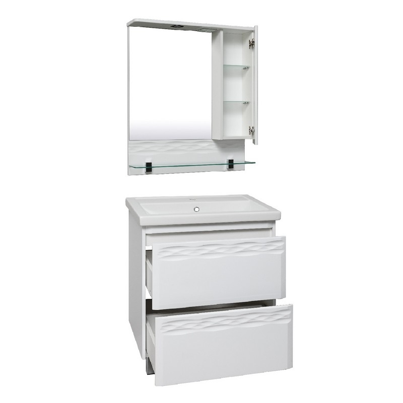 Комплект мебели для ванной Runo Вега 60 в белом цвете - это удобный, практичный и красивый гарнитур, который поможет Вам создать стильный и комфортный интерьер в ванной комнате. Для изготовления мебели используются только высококачественные и экологически чистые материалы, устойчивые к влаге и коррозии,что значительно увеличивает срок эксплуатации.Характеристики: