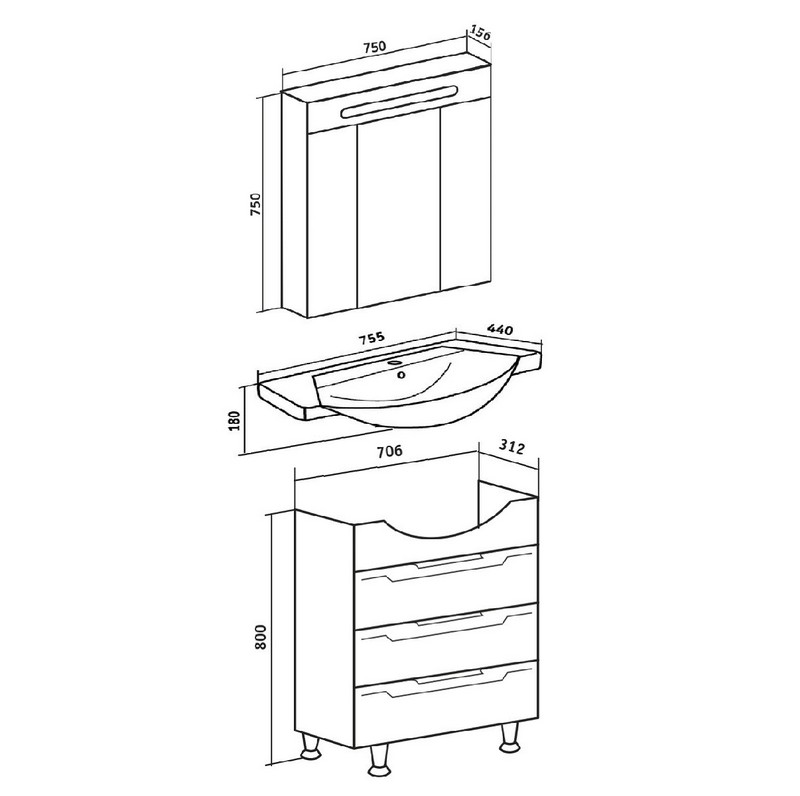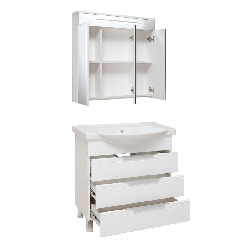 Комплект мебели для ванной Runo Верона 75 с зеркалом Парма 75 в белом цвете - это удобный, практичный и красивый гарнитур, который поможет Вам создать стильный и комфортный интерьер в ванной комнате. Для изготовления мебели используются только высококачественные и экологически чистые материалы, устойчивые к влаге и коррозии,что значительно увеличивает срок эксплуатации.Характеристики: