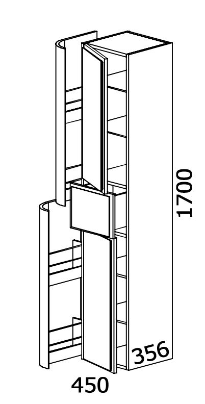 Пенал Prima ЦВ RAL. В комплекте: фасады, ящики полного выдвижения с доводчиком, комплект крепежа. Возможно исполнение в цветах по раскладке Ral.