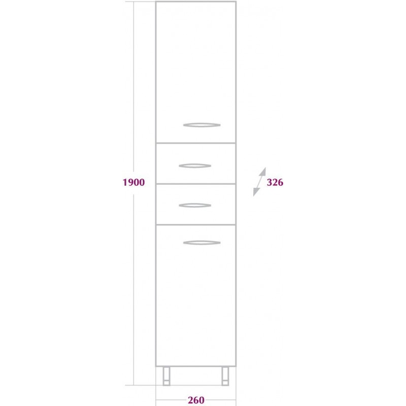 Пенал Onika Модерн 26.10. Двери распашные, с одним выдвижным ящиком, полки внутренние, ручки - металл (хром), ножки передние - металл (хром), ножки задние - пластик.