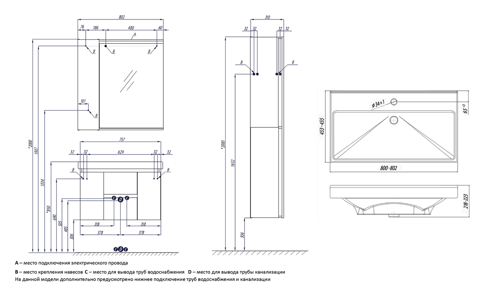 - Монтаж: подвесной, крепление к стене.