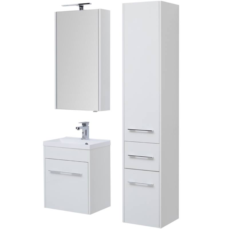Универсальный дизайн шкафа прекрасно дополнит любой современный интерьер ванной комнаты и позволит с удобством разместить необходимые бытовые средства и банные принадлежности.