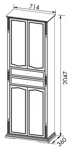 - Отделения: 2 выдвижных ящика, 4 распашные дверцы, 4 полки.