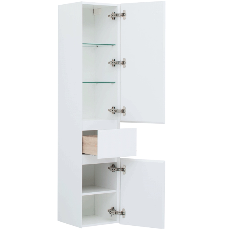 Правосторонний шкаф пенал Aquanet Нью-Йорк 35 R 203956 с двумя распашными дверцами, полками и ящиком. Цвет: белый глянец.