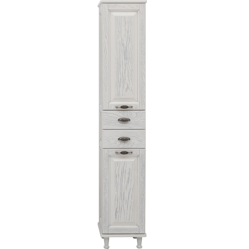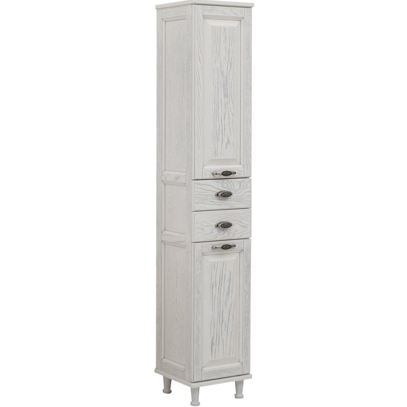 Шкаф пенал на ножках Aquanet Тесса 35 201807 Декапе с двумя распашными дверьми и двумя ящиками. Цвет: жасмин, серебро.
