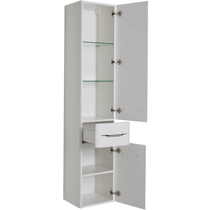Подвесной шкаф пенал Aquanet Виченца 36 196964 с выдвижным ящиком и распашными дверцами. Цвет: белый глянец.