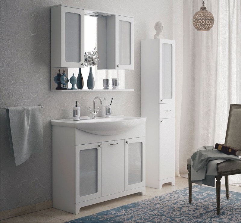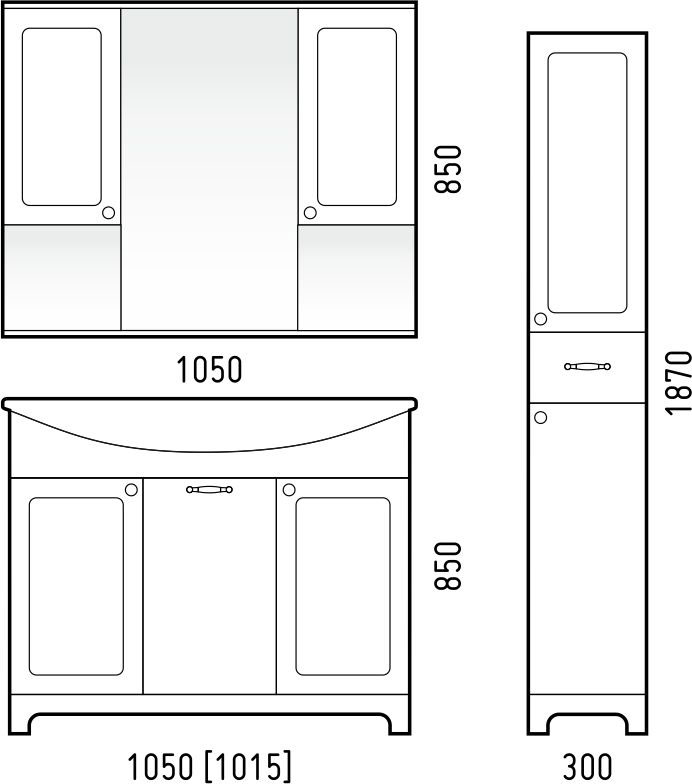- Верхняя дверь имеет сквозную фрезеровку и матовое зеркало.