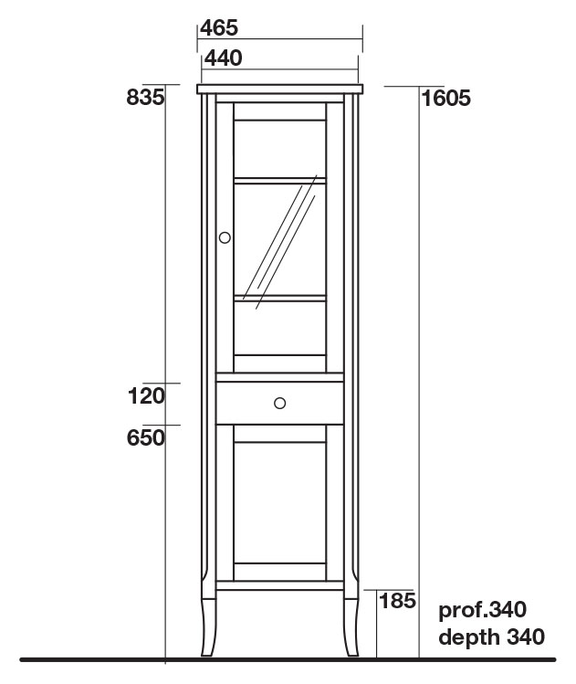 - верхнее: распашная дверца с витражом, две полки из стекла,