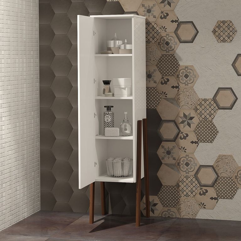 Шкаф пенал Opadiris Флоридо 35 L Z0000014838. Цвет: белый глянец/светлый орех.