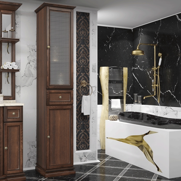 Шкаф пенал Opadiris Корсо Оро 42 R 00-00000621 с двумя распашными дверцами и одним выдвижным ящиком. Цвет: светлый орех.