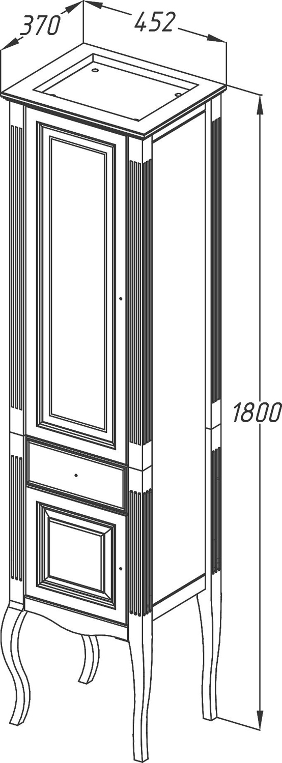 Выполнен в классическом стиле с плавными изогнутыми формами и изящными гнутыми ножками. Фасадные элементы украшены резными узорами. Особую роскошь добавляют ручки инкрустированные кристаллами Swarovski.