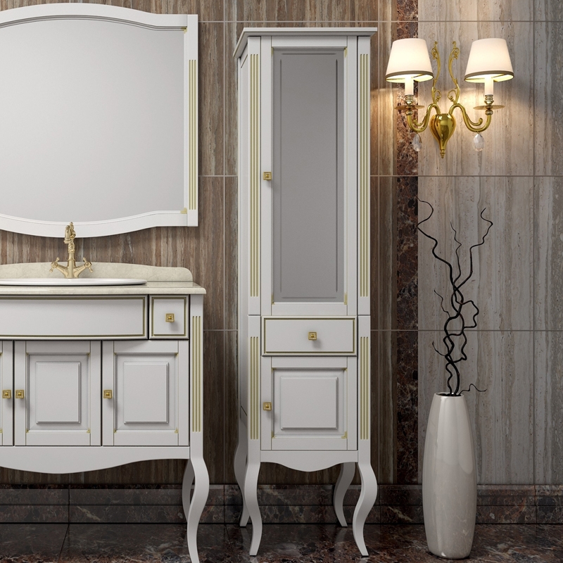 Шкаф пенал Opadiris Лаура 44 R Z0000006524 Белый с золотой патиной ручки Swarovski Золото