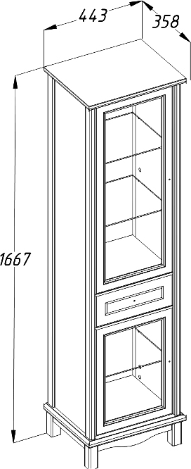 - Две распашные дверцы с узорчатыми матовыми стеклами и доводчиками для плавного и бесшумного закрывания.