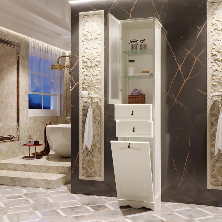 Шкаф пенал Opadiris Риспекто 40 L Z0000006258 с бельевой корзиной Слоновая кость ручки Бронза
