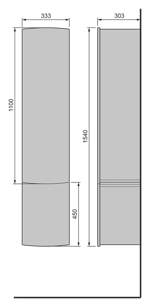 - Размеры (ШхГхВ): 33,3х30,3х110 см.
