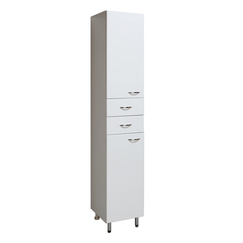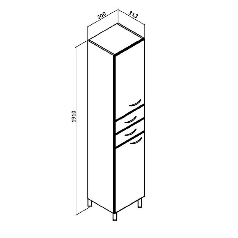 Пенал Runo Эконом 30 левый напольный с двумя распашными фасадами и выдвижными ящиками. В нижнем и верхнем отделениях - по одной внутренней полке. Ящики - на шариковых направляющих. Петли со встроенным доводчиком, ручки - 4 шт., ножки хром - 2 шт., ножки пластик - 2 шт. Характеристики: