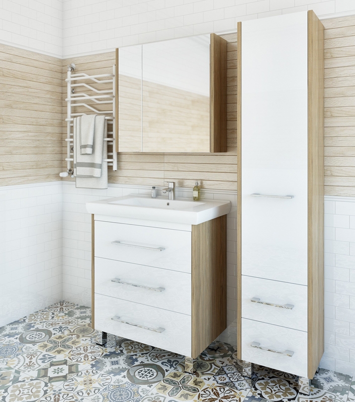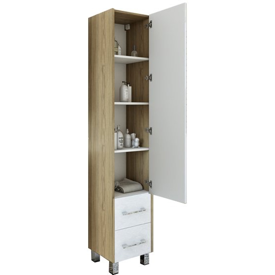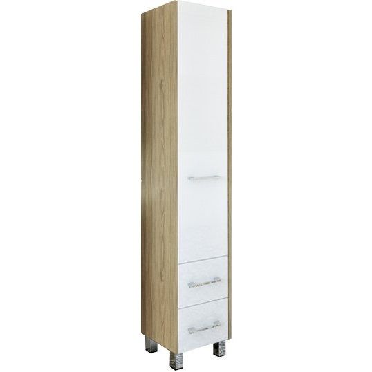 Напольный шкаф-пенал Sanflor Ларго 40 R Н0000000029 в цвете швейцарский вяз/белый, в скандинавский стиле, на четырех хромированных ножках, с распашной дверцей (петли справа) и с выдвижными ящиками.