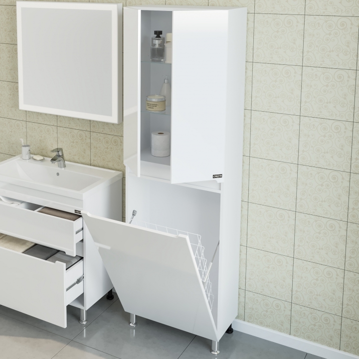 Шкаф пенал СанТа Лондон 60 с бельевой корзиной Белый