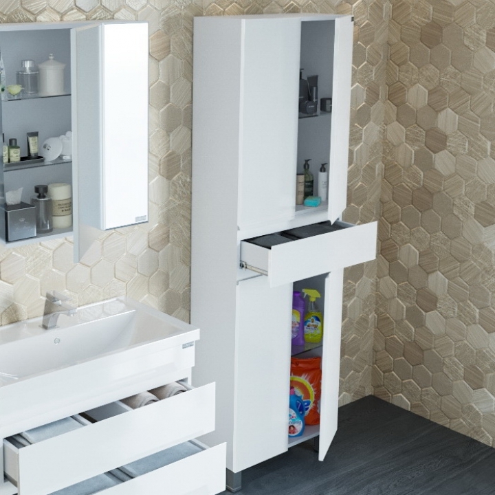 Шкаф пенал Санта Марс 60 700167 Белый изготовлен из качественных материалов в современном элегантном стиле. Поможет в создании ультрамодной ванной комнаты с сохранением актуальной функциональности. Предназначен для использования в условиях повышенной влажности.