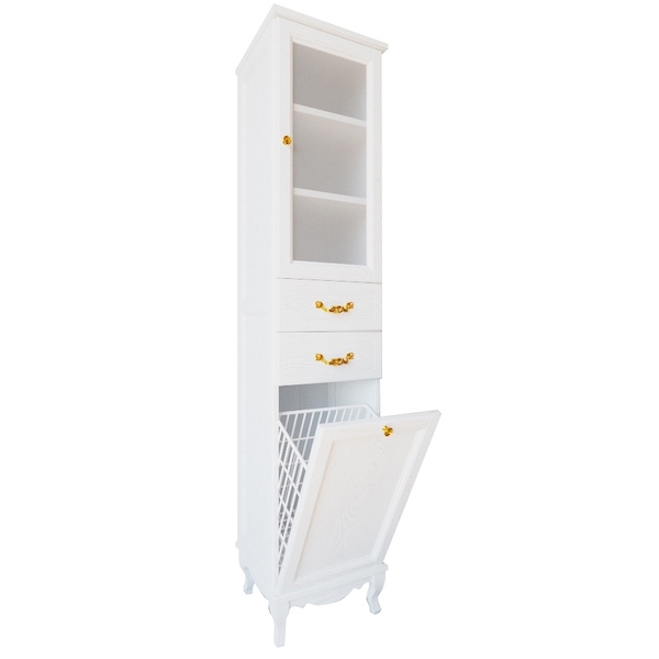 Шкаф пенал ValenHouse Эллина 40 E40_КБRЗ с бельевой корзиной. Дизайн модели превосходно дополнит интерьеры ванных комнат, оформленных в различных стилях: классическом, барокко, кантри.