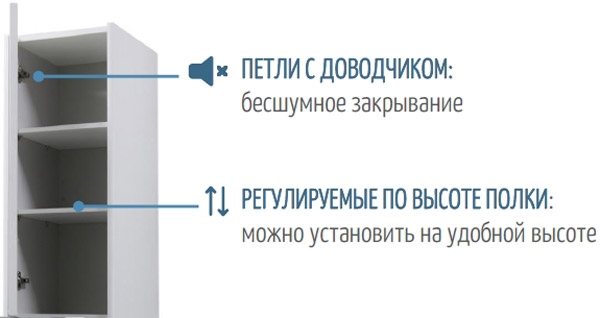 - Полупенал оснащен одним отделением с двумя регулируемыми полками из ЛДСП.