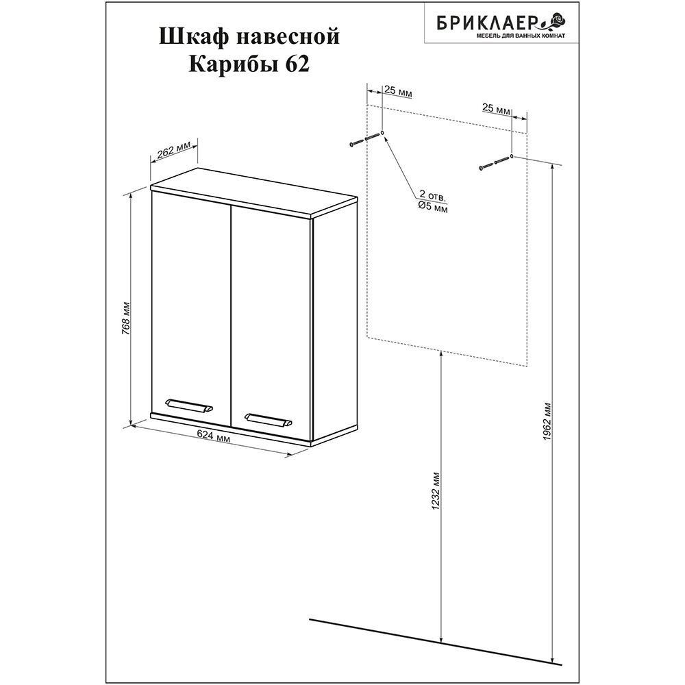 Подвесной шкаф Бриклаер Карибы 62 Дуб Антик Сатин. Для использования в ванных комнатах с повышенной влажностью.