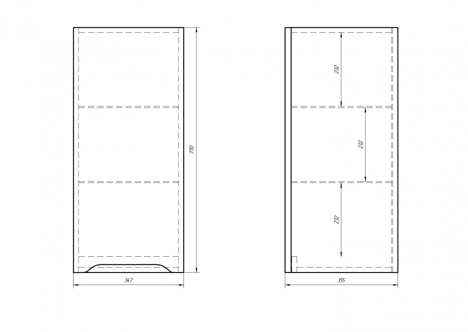 Габариты корпуса (ШхВхД): 34.7 х 77 х 35.5 см.