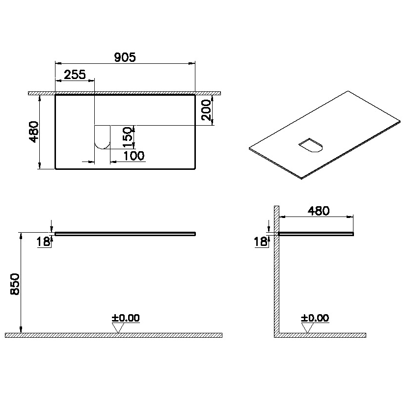 Столешница под раковину Vitra Origin 90 L 65857 Черный дуб