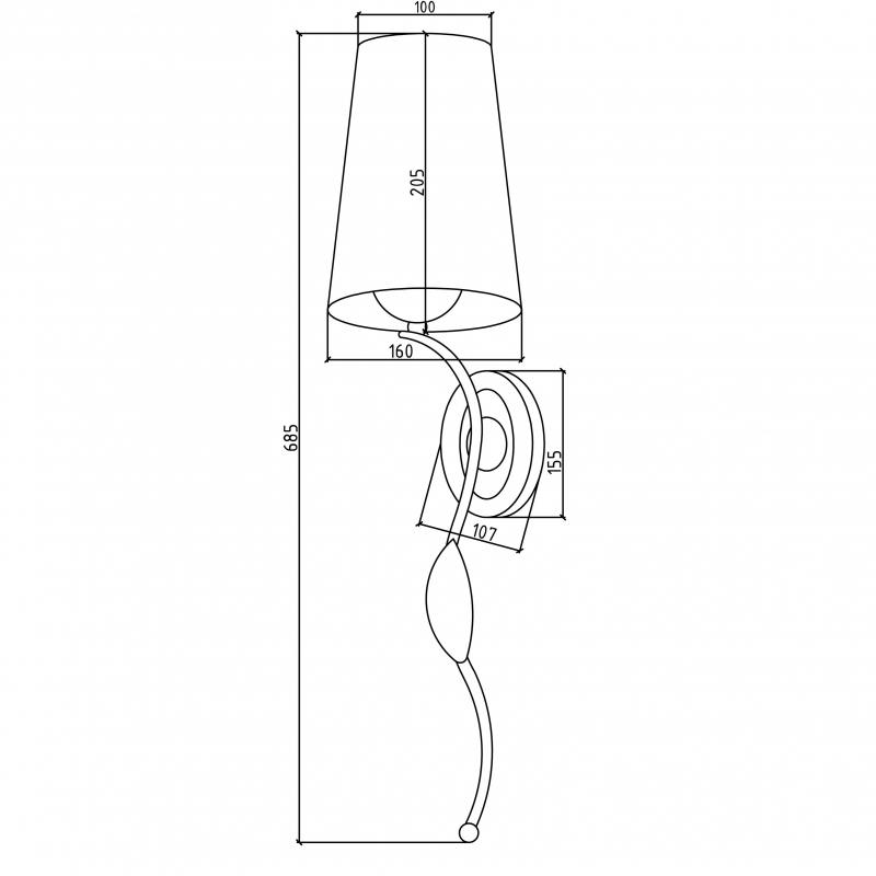 - Высота абажура: 205 мм.